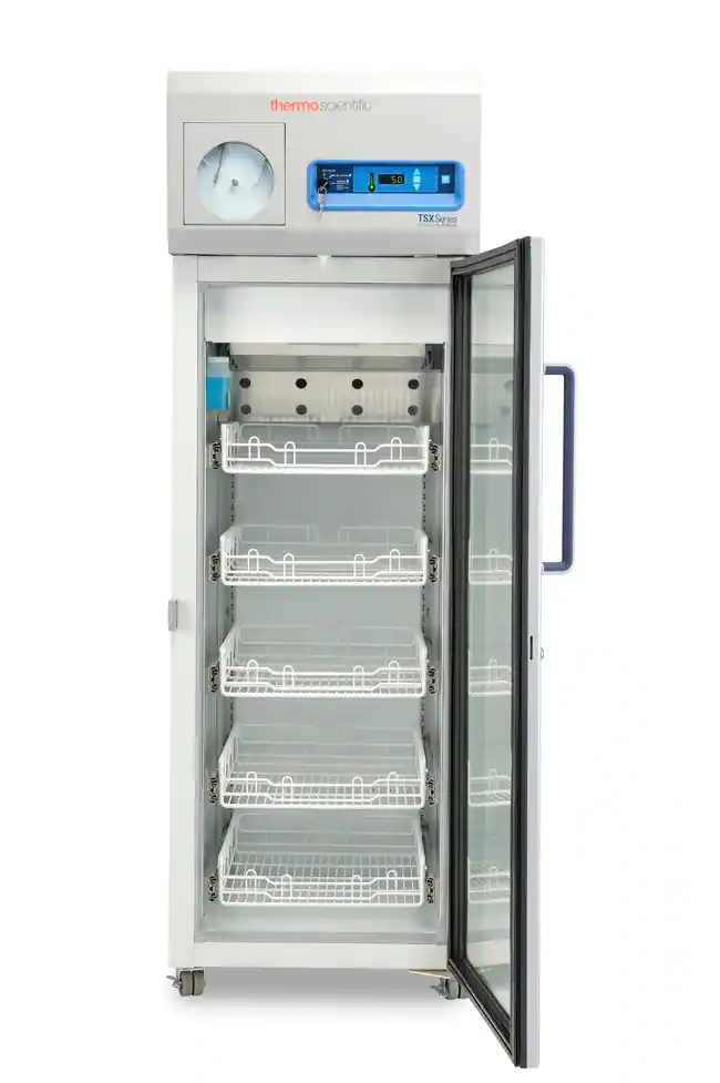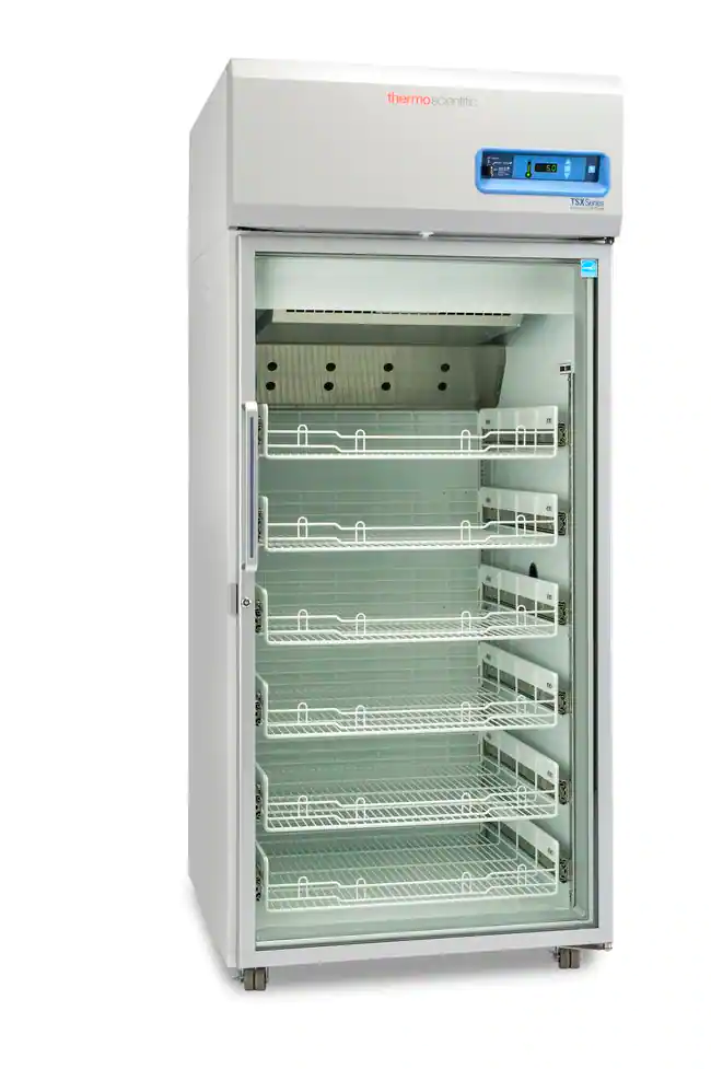 Thermo Scientific™ TSX Series high-performance pharmacy refrigerators are designed with features that support sample protection and sustainability objectives for the storage of pharmaceuticals, vaccines, chemotherapy and other medical and pharmacy-grade storage requiring 2° to 8°C. The Series’ V-drive technology is designed to provide temperature uniformity that continually adapts to user patterns, offering significant energy savings without compromising protection.