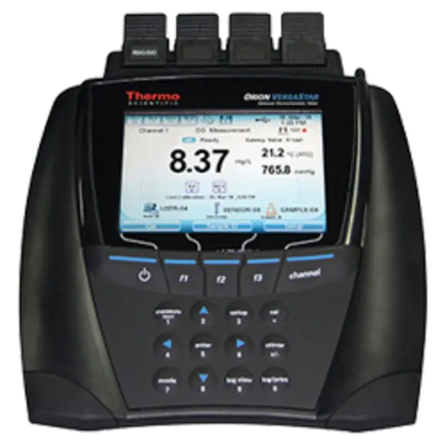 Get high accuracy, premium performance and ultimate flexibility with the Thermo Scientific™ Orion™ Versa Star Pro™ Benchtop Meter with Dissolved Oxygen/RDO Module. Meet your most challenging applications for dissolved oxygen and temperature. Easily view measurements on the stunning color display and customize the four meter channels with interchangeable modules. Use an RDO optical or polarographic DO probe and calibrate using water-saturated air, air-saturated water, custom value (Winkler) or zero point. Log up to 2000 data point sets with time/date stamp and transfer to a printer or computer.